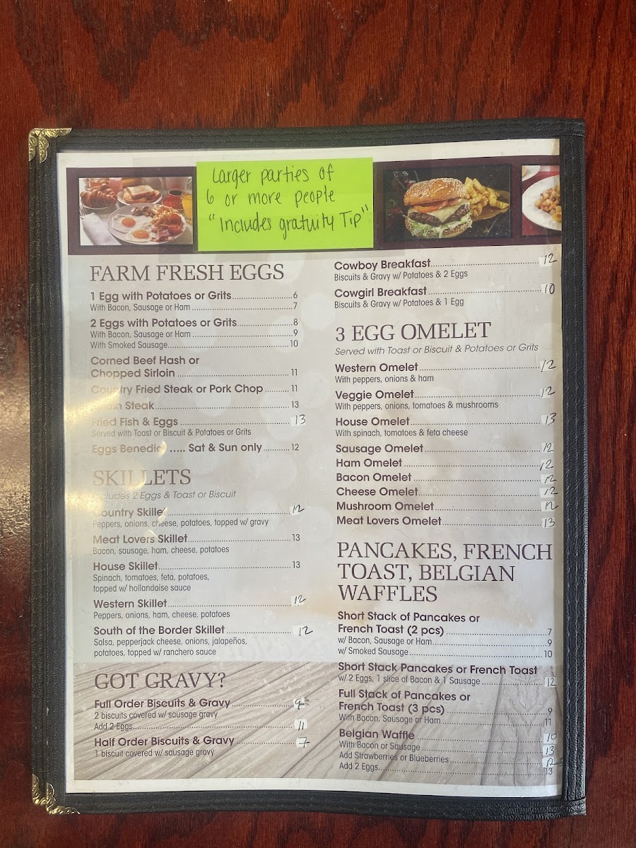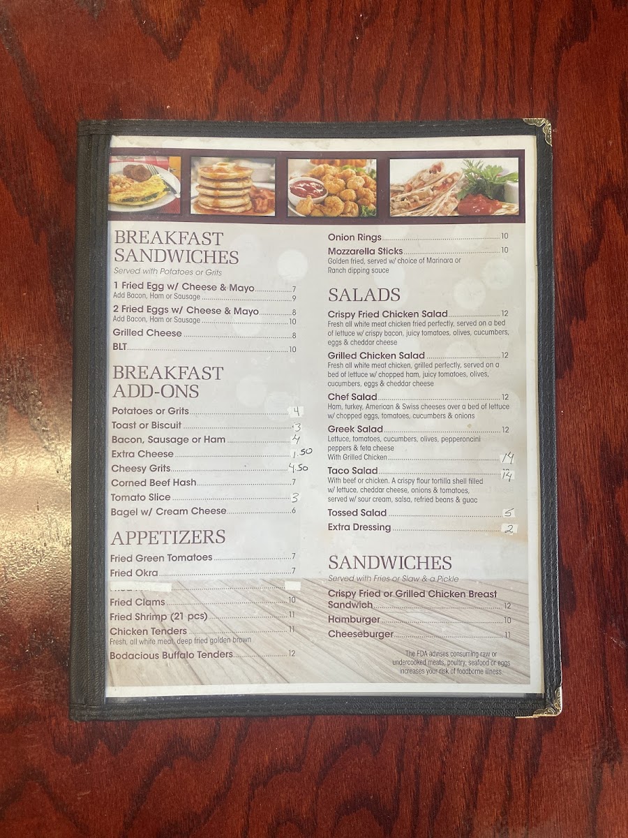 Ana's Restaurant in Wimauma, FL, offers a diverse and satisfying menu that caters to a wide range of tastes. For breakfast, you can enjoy options like the 1 Fried Egg W/ Cheese & Mayo or the heartier 2 Fried Eggs W/ Cheese & Mayo. The Grilled Cheese and Onion Rings are great additions for a light meal. If you're in the mood for something more substantial, there are various sandwiches, including the Crispy Fried or Grilled Chicken Breast Sandwich and the classic Hamburger or Cheeseburger. The menu also features flavorful Platters, such as the Boneless Fried Chicken Breast or Country Fried Chicken Steak. For those looking for a lighter option, the salads like the Crispy Fried Chicken Salad and Greek Salad are perfect. Kids can enjoy simpler meals such as 2 Slices French Toast or 1 Egg W/ Potatoes or Grits & Toast. Additionally, there are tasty Appetizers like Fried Green Tomatoes and Fried Clams, and a selection of Tacos, Tostadas, and Sopitos for something with a bit of a Mexican twist. Don't forget to try one of the delicious 3 Egg Omelets or Skillets, like the House Skillet or South of the Border Skillet, for a truly satisfying meal. With such a wide variety of dishes, Ana's Restaurant offers something for everyone, whether you're craving a hearty breakfast, a light salad, or a savory dinner.